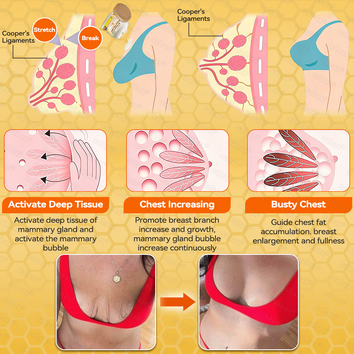 Sagging Skin: With age, fat pads shrink or shift, leaving the face and body without proper support. For women, especially after menopause, the decline in estrogen accelerates skin laxity. Sabax® Bee Venom & Whipped Tallow Balm Skin Repair Cream is powered by a natural formula that helps firm, lift, and enhance the breasts while soothing breast pain. It also provides effective support for various health concerns, including breast cancer care, fibrocystic breasts, mastectomy recovery, and post-surgical healing. Excess estrogen is a major cause of breast pain, while factors such as age, nutrition, pregnancy, and hypothalamic-pituitary disorders also play a role. This cream is designed to help restore hormonal balance and relieve discomfort, giving women renewed confidence and comfort.