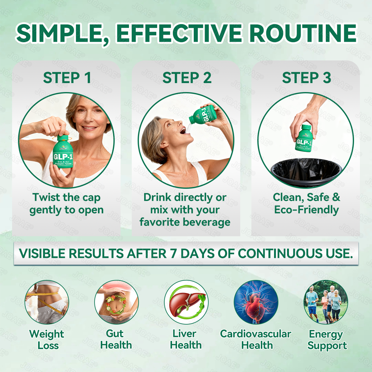 Clinically tested by endocrinologists,JOAEŽGLP-1 Slim & Gut Probiotic Powder shows noticeable improvements in weight, appetite control, and gut health within just 7 days.